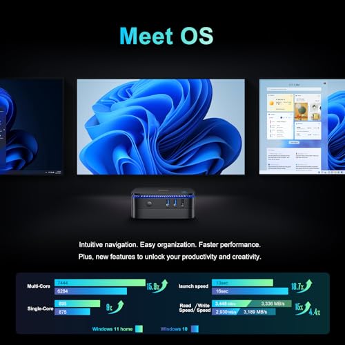 PELADN WI-6 Pro Mini PC, Intel 12th Gen Alder Lake- N100(up to 3.4GHz), 16GB DDR4 3200Mhz RAM 512GB M.2 PCIe SSD, Desktop Computer Support 4K Dual Display/USB3.2/WiFi 5/BT4.2/Win 11 Pro