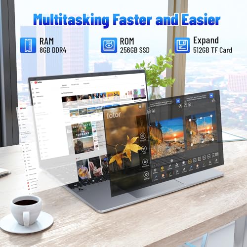 Laptop Computer, 15.6" Laptops, 8GB RAM 256GB ROM, Intel Celeron Quad-Core Processors, 1366 * 768 IPS, Long Battery Life, Type-C, TF Card, Mini-HDMI